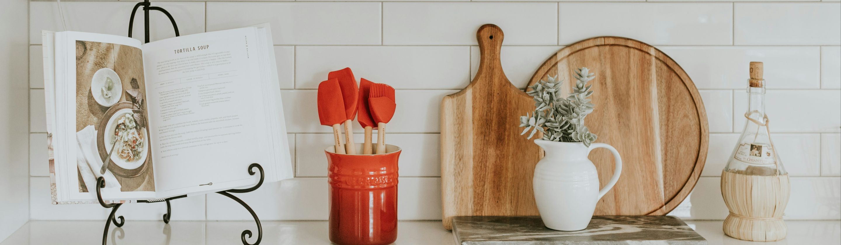 Did you know that something as simple as fresh flowers can brighten up a whole kitchen? It’s true, and it’s an affordable way to make your space look more luxurious! You can also invest in a cute vase for a centerpiece that wows top to bottom.