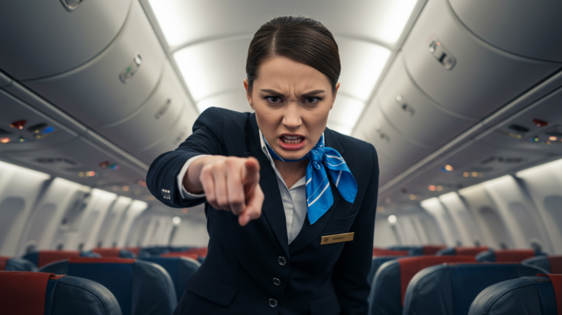 A hospedeira de bordo continuava a olhar para mim, com a mente inalterada. Ela não estava a recuar, mesmo com as provas a acumularem-se contra ela.